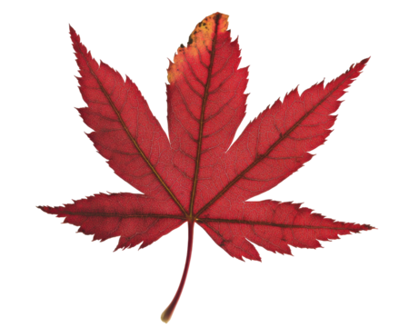 Vibrant Red Maple Leaf on Transparent Background Capturing the Essence of Autumn Nature
