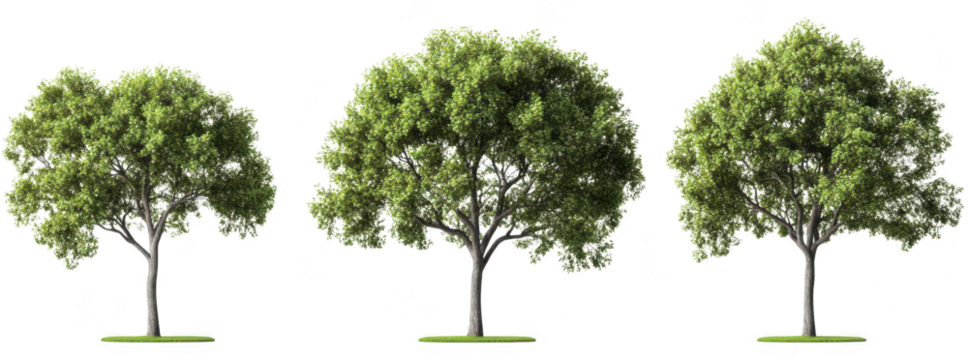 Three Horses Grazing in a Lush Green Meadow, Isolated on White