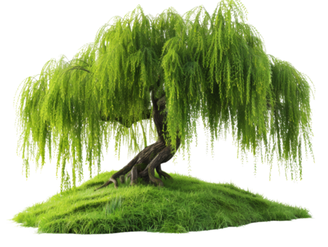 Isolated Young Weeping Willow Tree on Transparent Background
