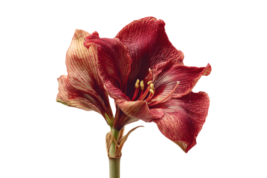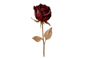 Collection of Seven Dried Rose Blossoms with Wilting Petals and Stems, cut out transparent