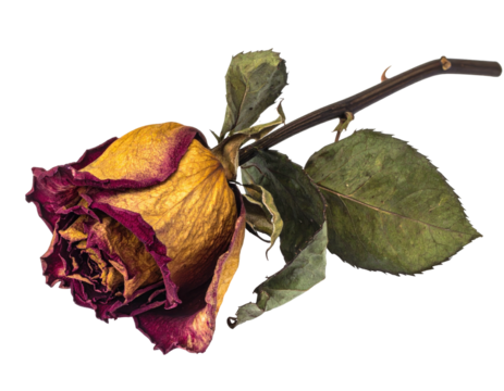 Withered rose with dried petals and leaves