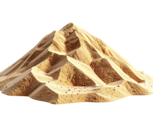 A sculpted sand pile with layered ridges, isolated on a dark background