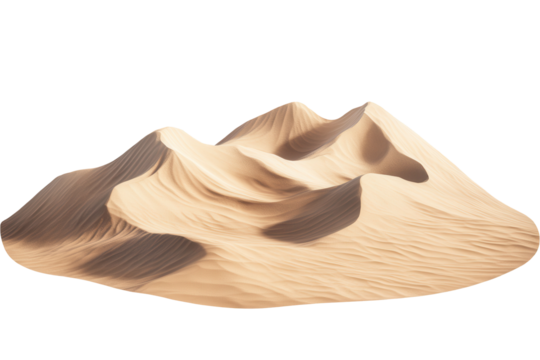 Expansive desert sand dunes with shadows and highlights, isolated on transparent background