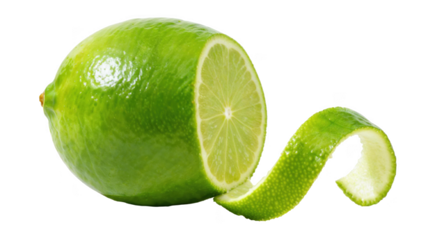 Orange with spiral peel transparent background fresh citrus fruit close up