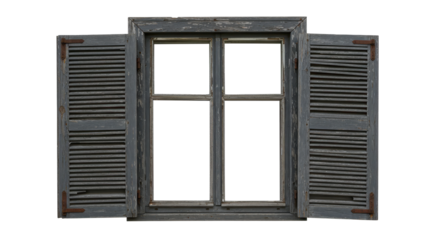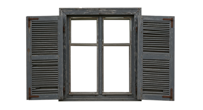 Isolated Rustic Window with Shutters