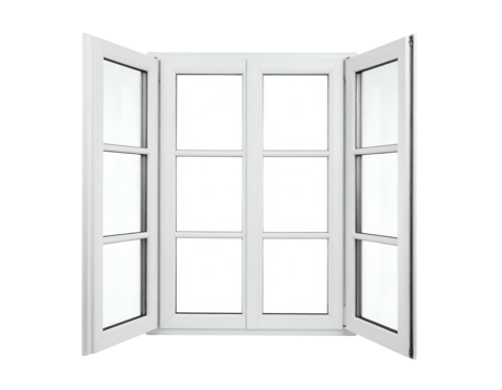 White triple sash window with multiple panes and classic architectural frame isolated on transparent background png