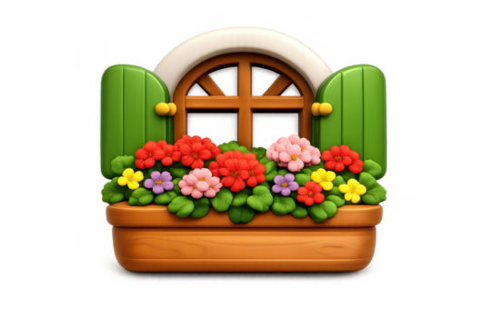 Colorful flower planter with vibrant blossoms by window for home and garden decor