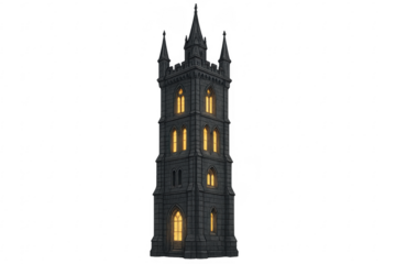 Dark gothic medieval castle tower illuminating windows