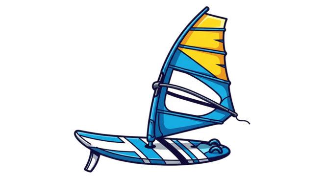 Exciting blue and yellow windsurf board graphic Perfect for summer water sports ocean recreation beach adventure freedom