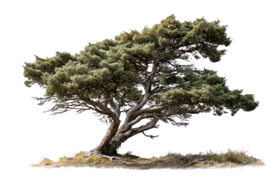 Lone windswept tree on transparent background