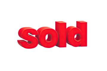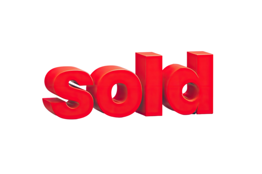 3D bold red "sold" text graphic against a black background. Focused studio-style shot