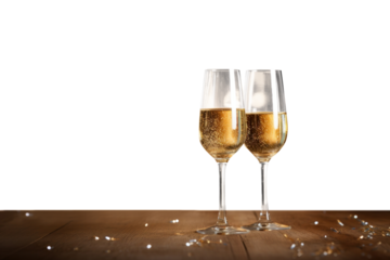 Minimalist New Year’s Greeting Card Background with Champagne Glasses and Glitter Border, Isolated PNG