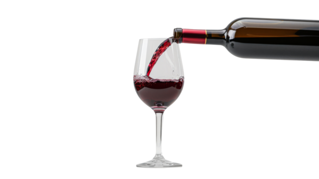 A dynamic splash of red wine, frozen in motion. This elegant liquid pour is isolated on a transparent PNG background, perfect for luxury advertising, menus, or celebration-themed designs.