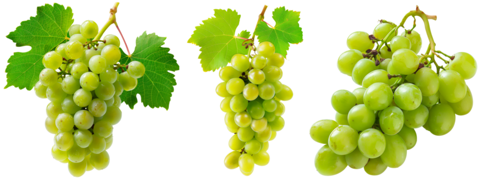 Green grapevines collection, set of juicy grapes isolated on a transparent background
