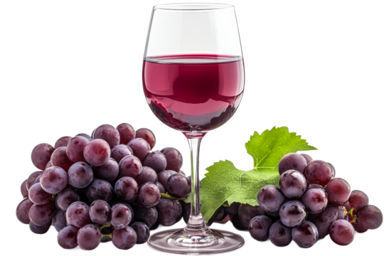 Elegant wine glass filled with rich red wine, showcasing its deep color and clarity, perfect for sophisticated dining experience, Isolated cutout on a transparent background
