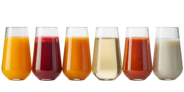 Assorted Wine Glasses with Different Colored Liquids Isolated on transparent background