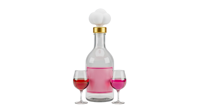 Wine Bottle with Two Glasses and a Cloud Stopper