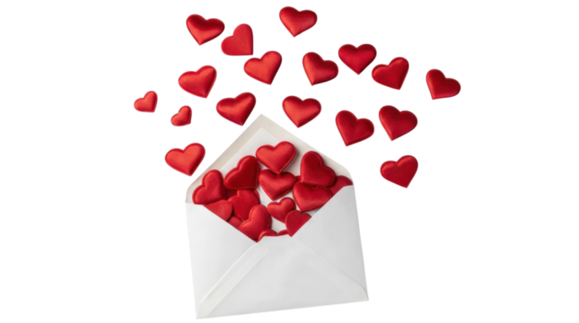 Love letter envelope with hearts and wings clipart on transparent background