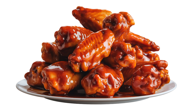Delicious BBQ Chicken Wings, Savory and Sweet Glaze, Appetizer on transparent background