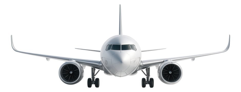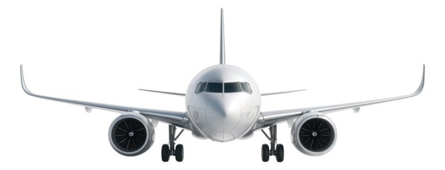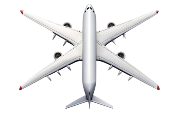 Passenger jet airplane, white with red wingtips and tail fins, cutout, PNG, isolated on white or transparent background, AI