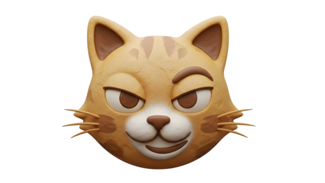 A cute cartoon cat face with a smiling expression and winking eyes on a white background with smiling cat and winking cat and cute cat and funny cat and feline face