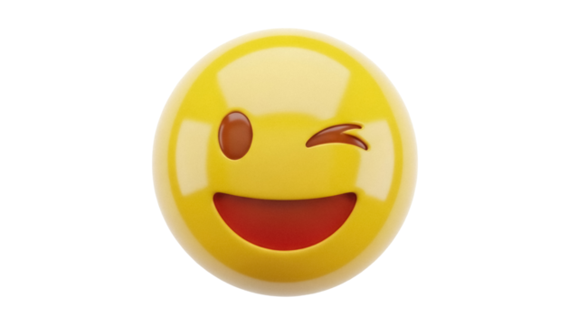 Yellow 3d winking emoji face expressing playful mood, happiness, and cheerful emotion on transparent background