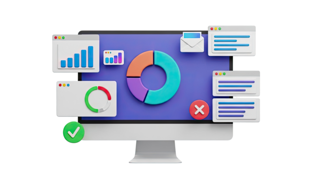 Computer Screen with Data Visualization and Icons