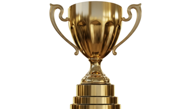 Gold trophy award winning cup competition achievement celebration on transparent background