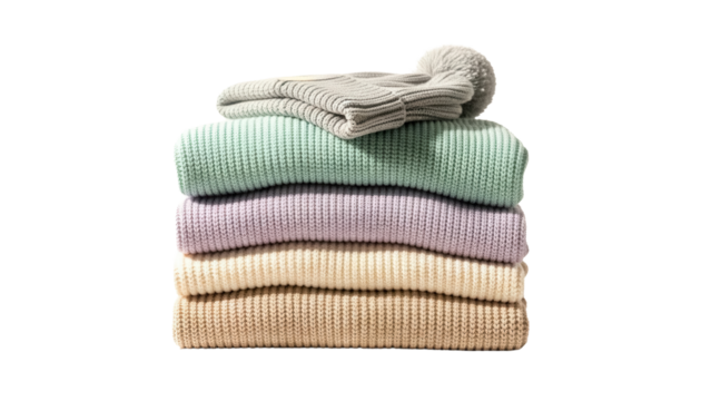 Two knit beanies, cold weather headwear apparel, cut out transparent