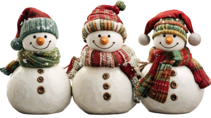 Charming Christmas Snowmen Collection, Isolated on White, PNG File, Transparent Background