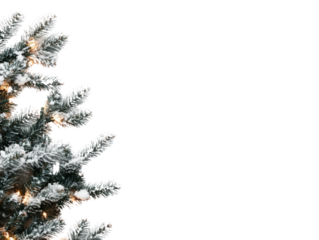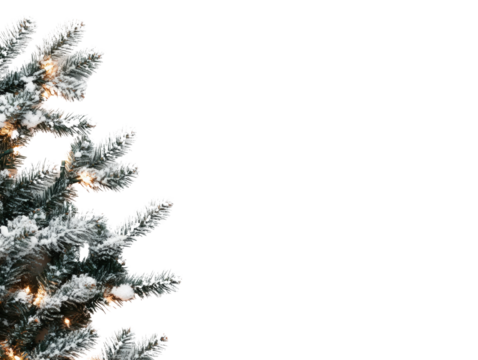 A beautifully decorated Christmas tree with snow-covered branches and warm glowing lights, perfect for holiday celebrations.