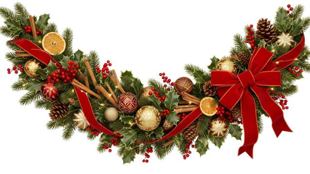 Elegant decorative wreath with festive details on transparent