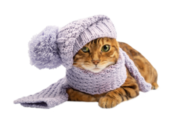 Joyful redhead embracing winter in warm hat and scarf on transparent background