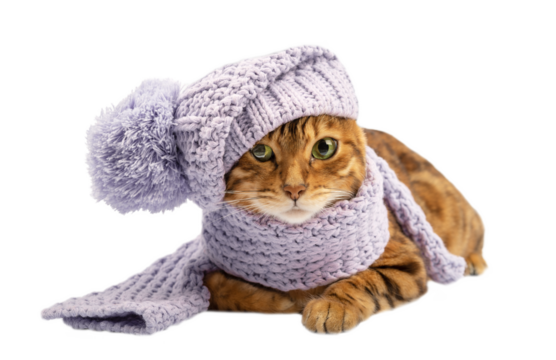Cozy knitted hat and mittens set perfect for winter activities isolated on transparent background