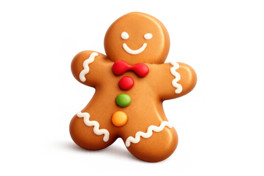Festive gingerbread cookie icon with colored buttons and red bow tie for holiday design