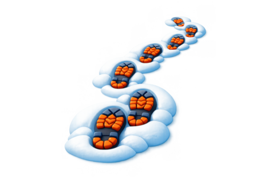 Arctic footprint trail in snow with winter boots illustration for nature and adventure design