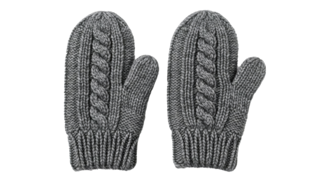 Pair of knitted mittens with winter patterns isolated on transparent background