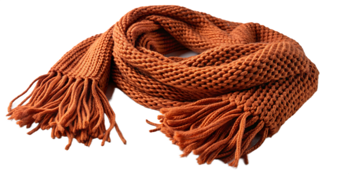 Chunky knit wool scarf with fringe isolated on a transparent background orange