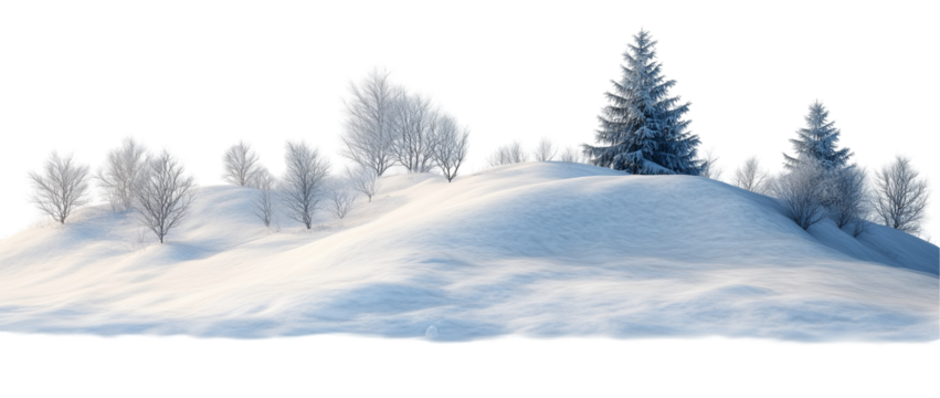 The image features a winter scene with a stretched road winding through a dense forest, and the background removed to isolate the tranquil landscape against a transparent backdrop.