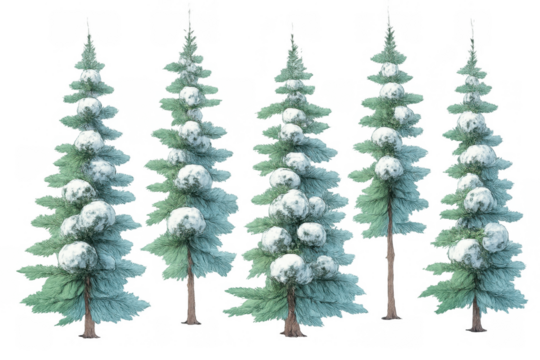 Digital forest illustration on transparent background in winter