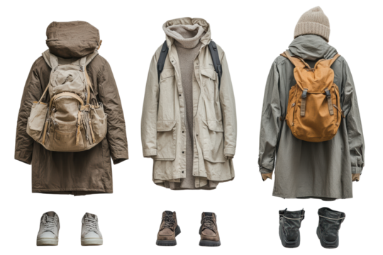 Transparent winter-clad woman gaze outdoors in hooded coat