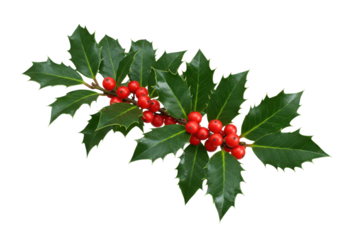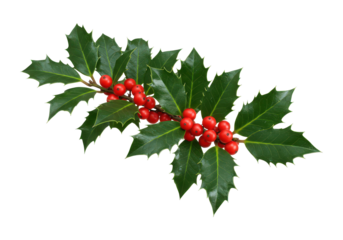 Holly Branch With Vibrant Red Berries and Glossy Green Leaves Isolated on Transparent Background