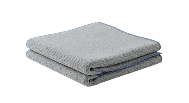 Folded grey microfiber cleaning cloth for dust and surface wiping isolated on a transparent background