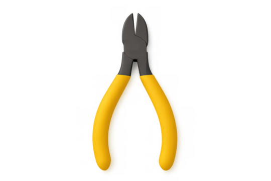 Diagonal cutters with yellow handles, a common hand tool for electricians and diy projects, on transparent background