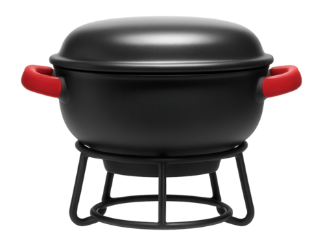 Ceramic tabletop grill with heat-resistant handles and wire stand for terrace dining