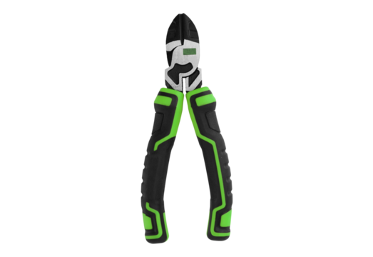 Wire cutters with black and green handles isolated on transparent background