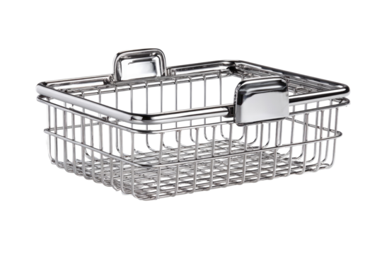 Rectangular, stainless steel wire basket with handles