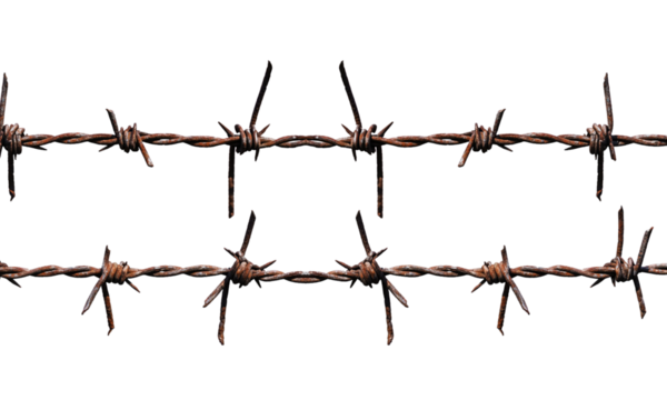 High-security barbed wire fence isolated on transparent background, , clipping paths for design and decoration