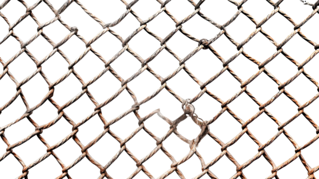 Open metal wire mesh fence with lightweight isolated on transparent background, , clipping paths for design and decoration
