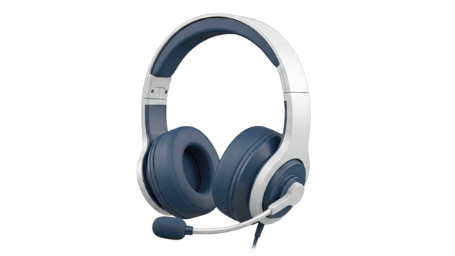 Silver and white wired earphones with a 35mm jack, isolated on transparent background